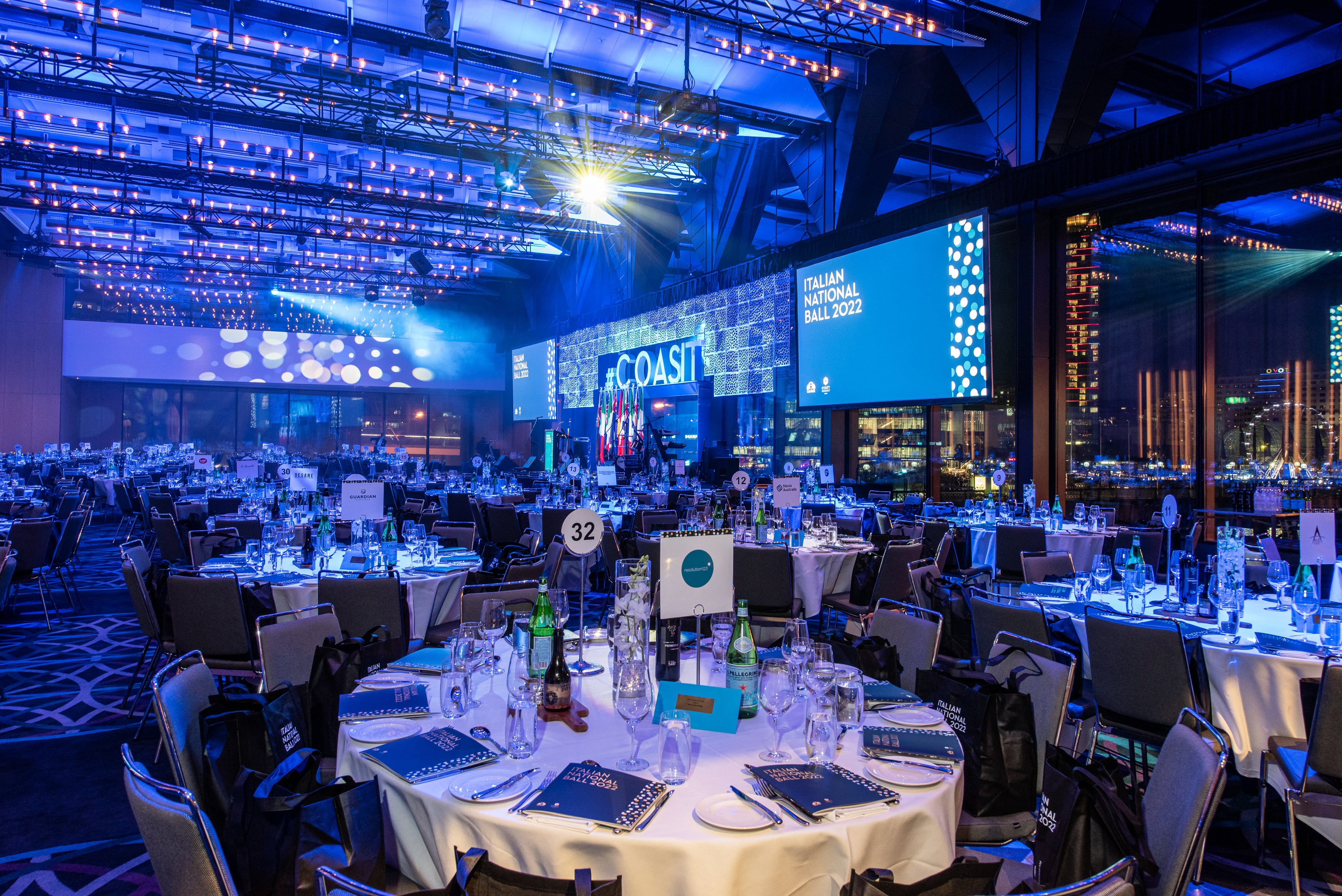 The evening was hosted in the Hyatt Regency Sydney’s Grand Ballroom, an impressive waterfront venue offering panoramic views of Darling Harbour through its floor-to-ceiling windows. This striking setting provided a fitting backdrop for one of Australia’s largest and most respected Italian-Australian charity events.